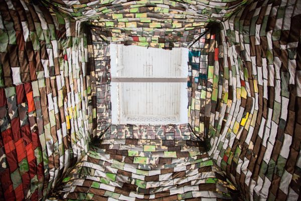 Title: The Prayer On The Wind Year: 2015 Material: Monk’s robes, camouflage textile, handwritten notes, [...]